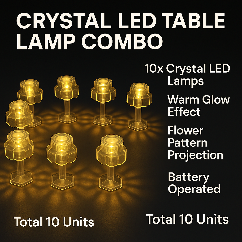 Crystal LED Table Lamp Combo – Pack of 10 | Warm Glow, Battery Operated Decorative Lights