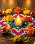 Each diya radiates a soft golden light, symbolizing purity and positivity. The battery-operated design ensures long-lasting glow, safety, and reusability — making it a modern touch to traditional celebrations.